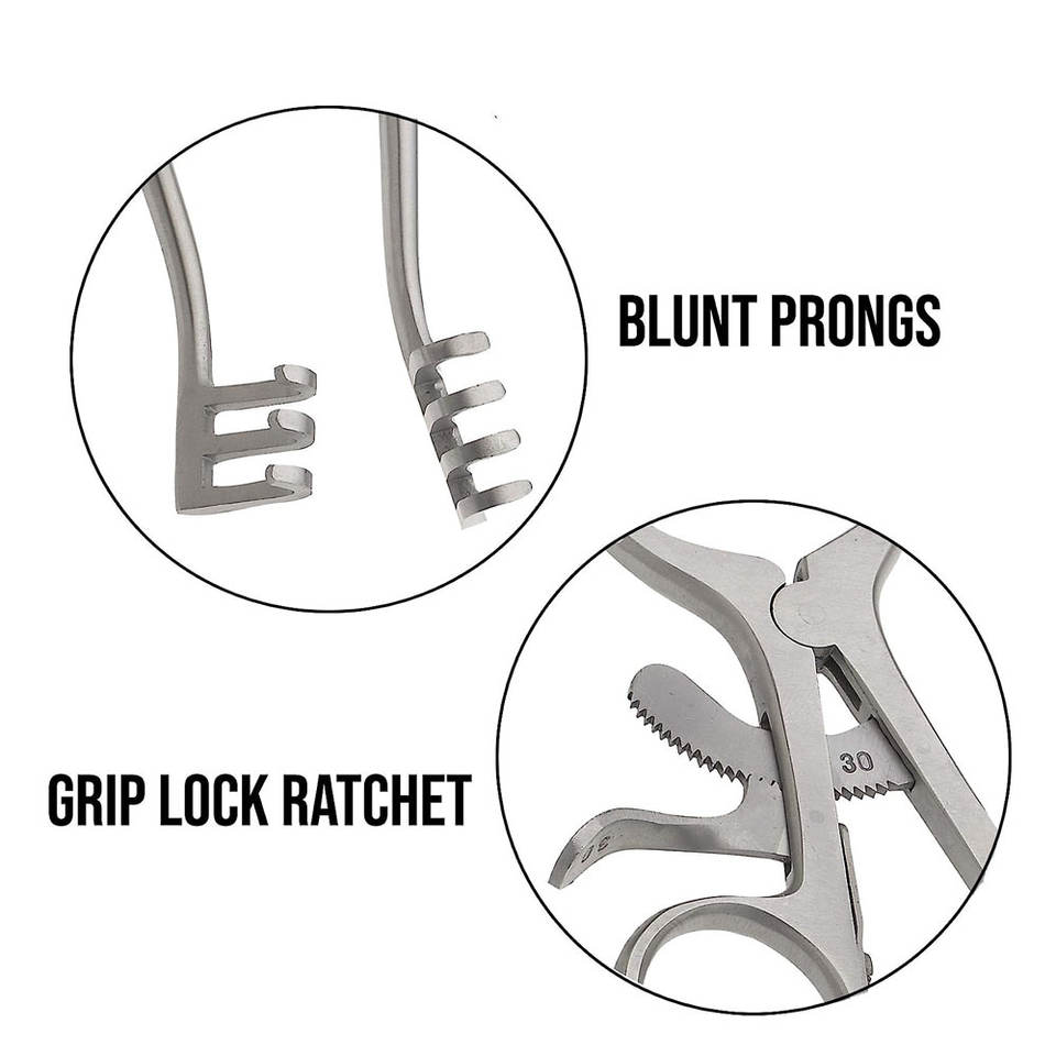 ที่ดึงแผลสแตนเลสสตีล Weitlaner ขนาด 4.5 นิ้ว แบบมีโลโก้สั่งทำพิเศษ สำหรับการผ่าตัดสัตว์ ชนิดยึดติดเอง คุณภาพสูง ระดับ Class II