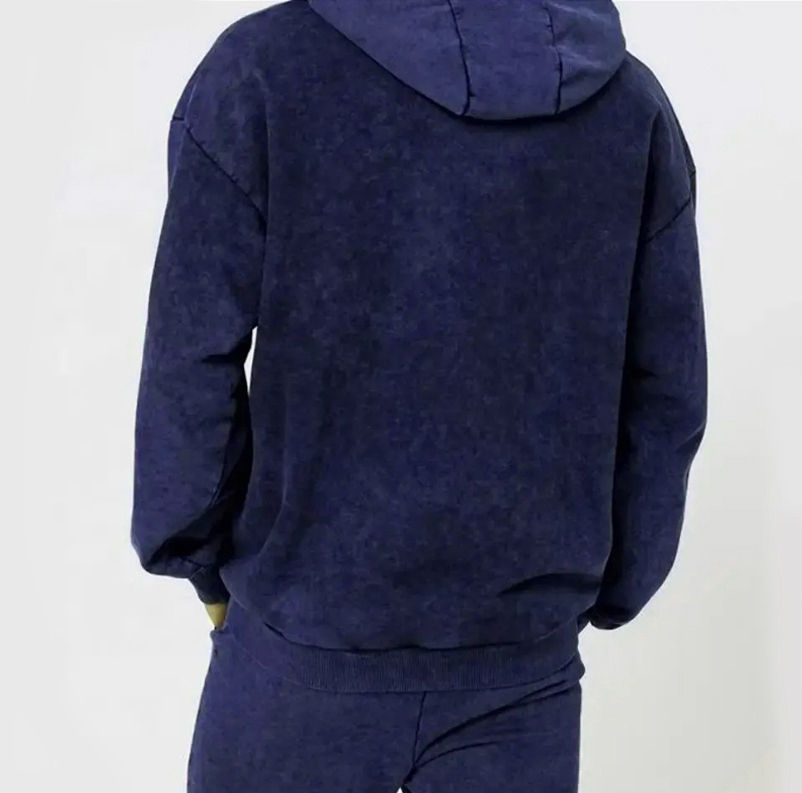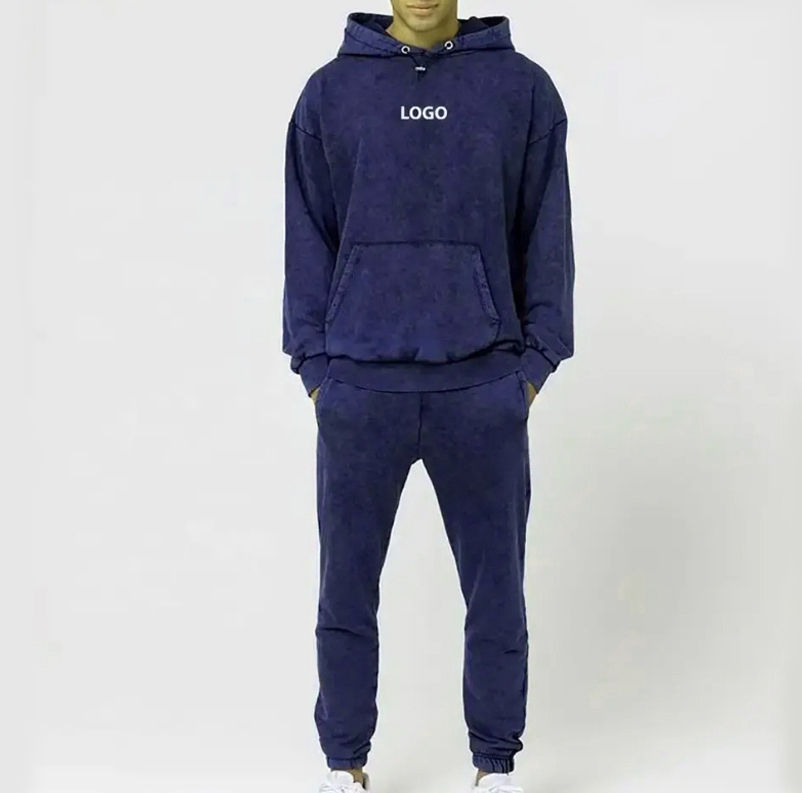 เสื้อวอร์มแบบสวมหัวมีฮู้ดและกางเกงวอร์มแนววินเทจฟอกสีได้โลโก้ออกแบบได้ตามต้องการ