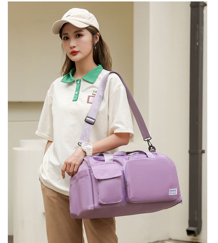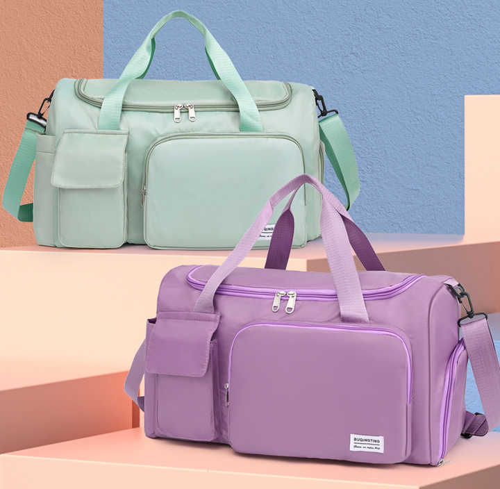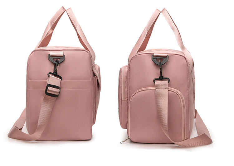 กระเป๋าเดินทางสีชมพูสำหรับผู้หญิงกระเป๋าเดินทางกันน้ำสำหรับยิมค้างคืนกีฬาใช้ในยิมสามารถปรับแต่งโลโก้ได้