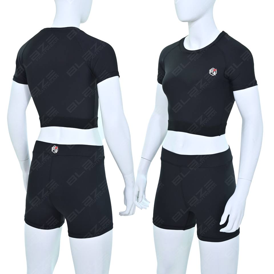 ชุดออกกำลังกายโยคะสำหรับผู้หญิง ชุดกีฬา 2 ชิ้น เสื้อครอปสั้นเหนือเข่า แห้งเร็ว ระบายอากาศได้ดี พร้อมโลโก้แบบกำหนดเอง