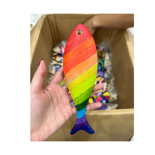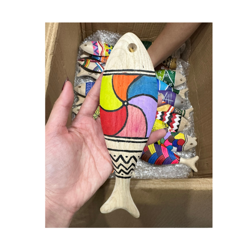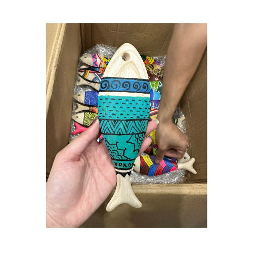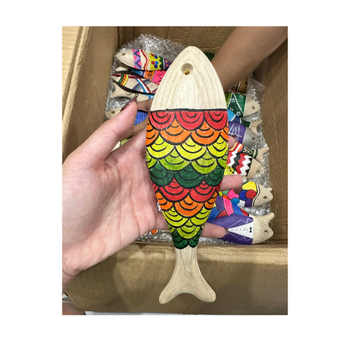 งานฝีมือปลาแกะสลักทำจากไม้ DIY สำหรับแขวนผนังตกแต่งโลโก้รูปปลาทำจากเวียดนาม