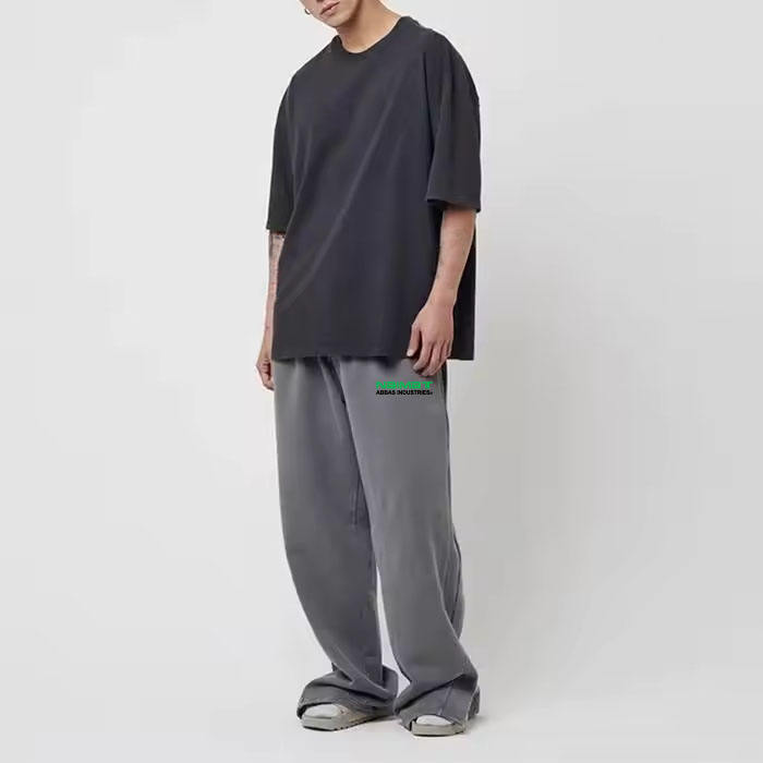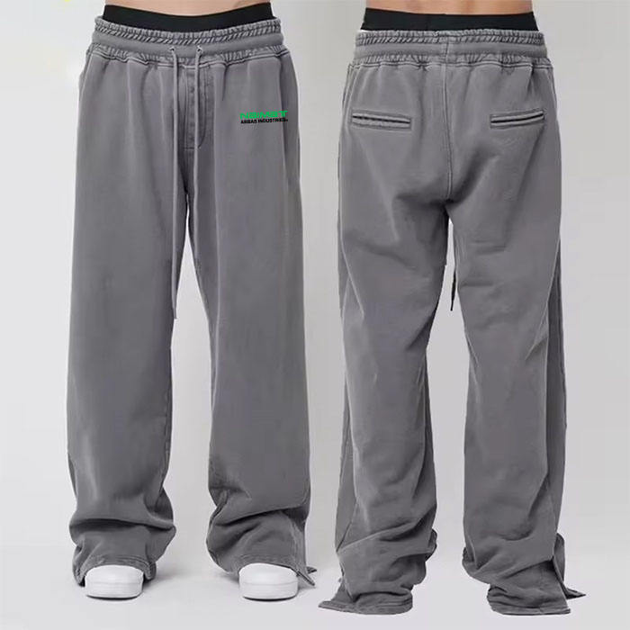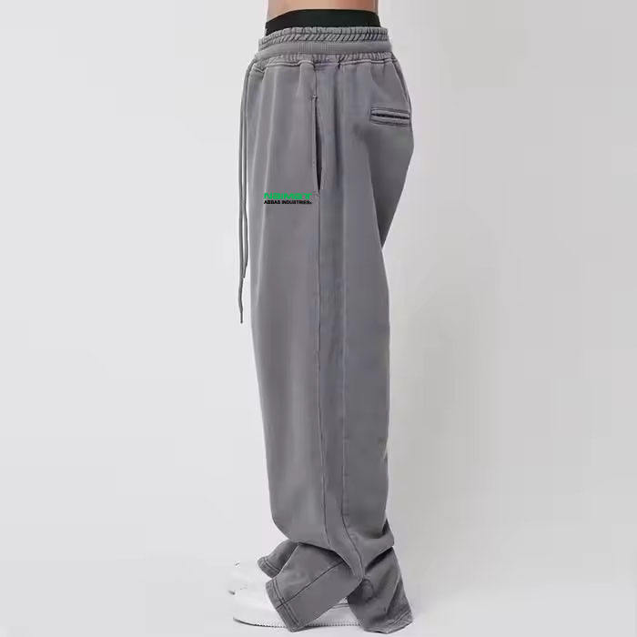 กางเกงขายาวทรงบานผ้าขนสัตว์ผสมเฟรนช์เทอร์รี่สำหรับผู้ชาย แต่งโลโก้ตามสั่ง เอวสองชั้น ทรงหลวม ระบายอากาศดี สไตล์ลำลอง สตรีทแวร์ เอวกลาง แต่งเชือกผูก