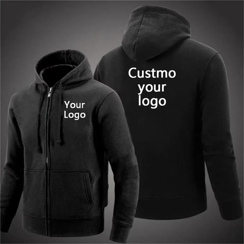 เสื้อมีฮู้ดมีซิปสำหรับผู้ชายสไตล์ฮาราจูกุเสื้อแนวสตรีทปรับแต่งได้พร้อมรูปถ่ายลายฮิปฮอปสีทึบ