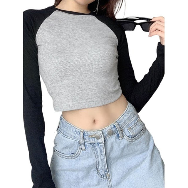 เสื้อยืดเอวลอยแขนยาวสำหรับผู้หญิงเสื้อยืดชุดกีฬาสไตล์สตรีทเสื้อยืดผ้าฝ้ายเย็บริมแบบปรับแต่งโลโก้และการพิมพ์ลาย