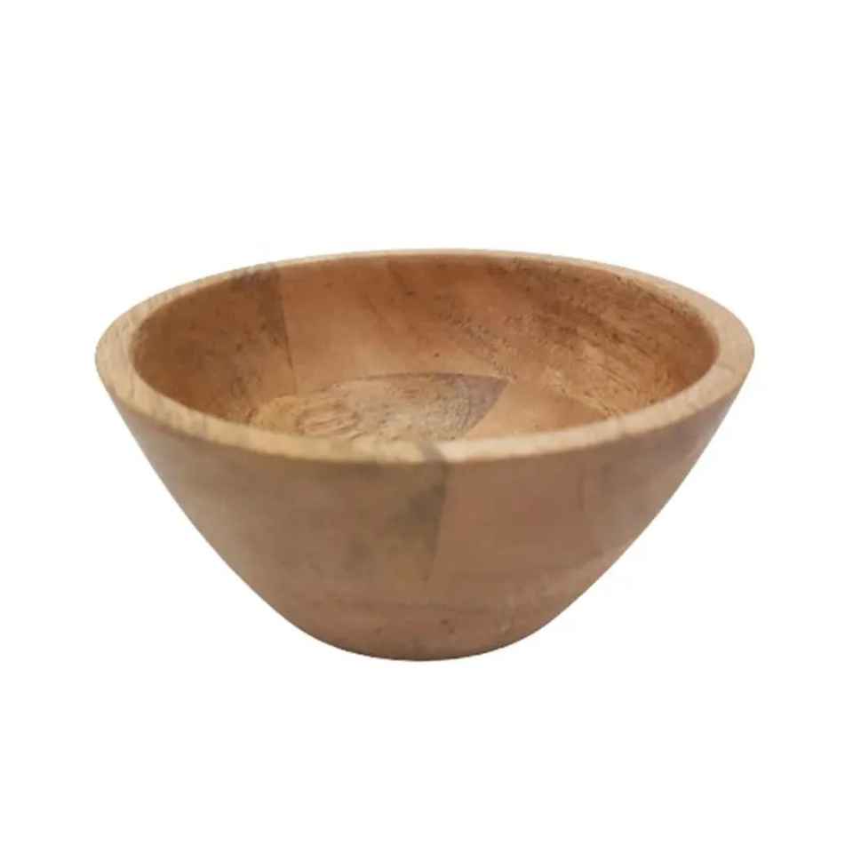 ชามสลัดไม้มะม่วงอินเดียทรงกลมแบบกำหนดโลโก้และขนาดได้ ทำจากไม้กระถินณรงค์ เป็นมิตรกับสิ่งแวดล้อม ใช้แล้วทิ้งได้
