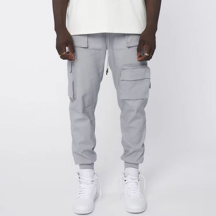 กางเกงคาร์โก้ของผู้ชายผ้าคอตตอนทรงหลวมแนวสตรีทกางเกงวอร์มออกแบบได้ตามต้องการ