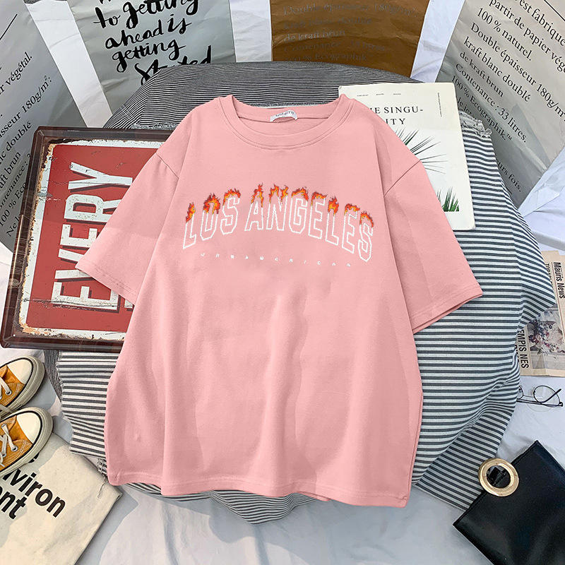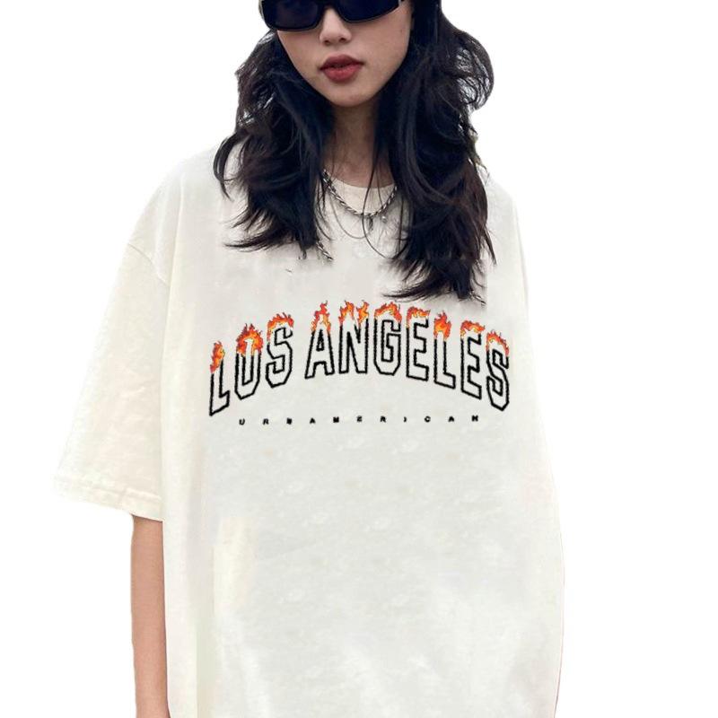 เสื้อยืดโลสแอนเจลิสแบบกำหนดเองสำหรับผู้หญิง สไตล์ฮาราจูกุ ลายกราฟิกพิมพ์ตัวอักษร เสื้อยืดผู้หญิง