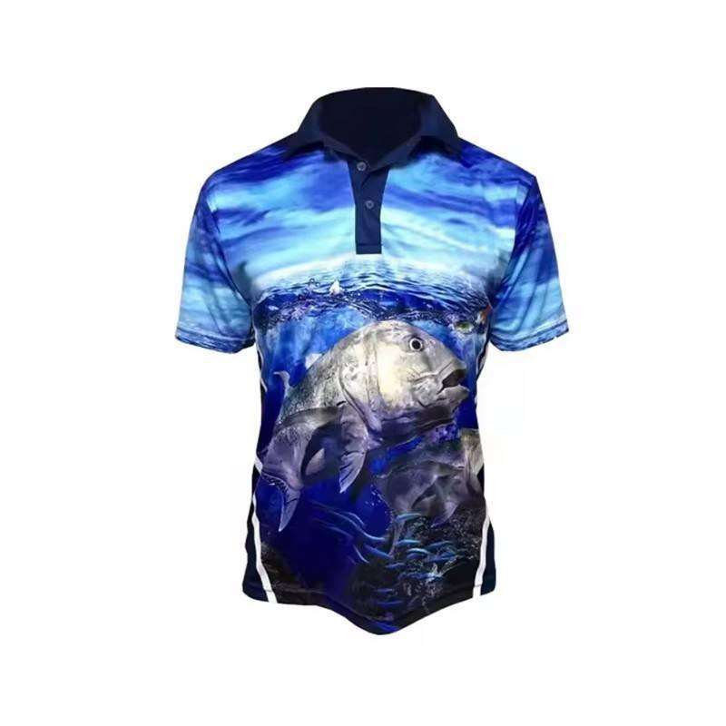 เสื้อฮู้ดตกปลาโพลีเอสเตอร์แห้งเร็ว พิมพ์ลายแบบซับลิเมชั่นตามสั่ง MOQ ต่ำ ป้องกันแสงแดด UPF 50