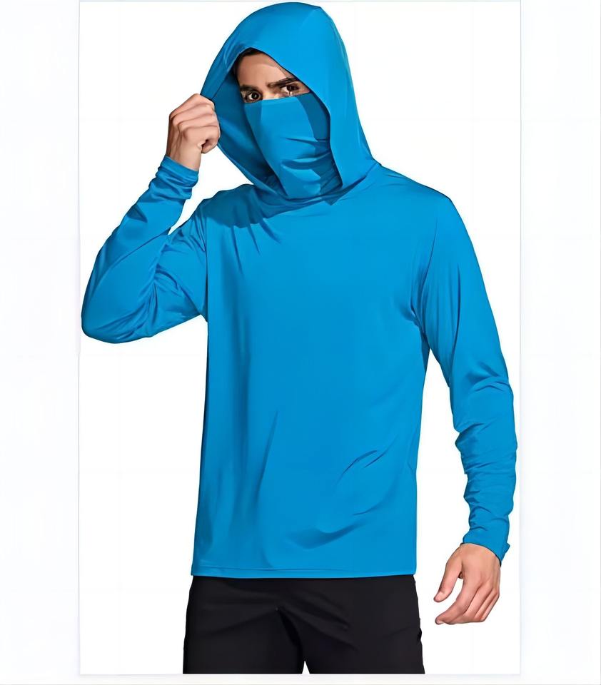 เสื้อตกปลามีฮู้ดแบบแห้งเร็วเสื้อตกปลามีฮู้ด UPF 50ผ้าโพลีเอสเตอร์สั่งพิมพ์ซับลิเมชันต่ำ