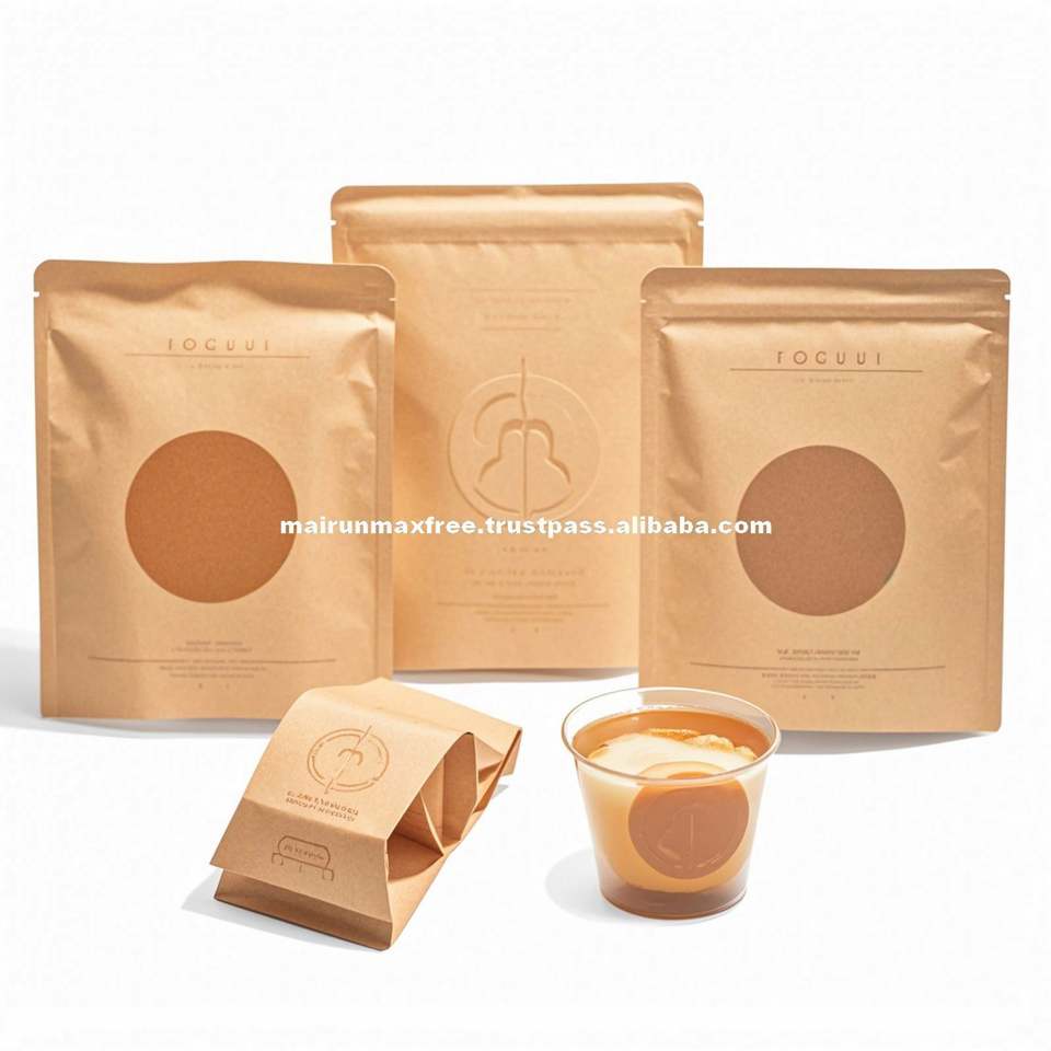 ถุงซิปด้านบนสำหรับเก็บอาหารกระดาษคราฟท์สีดำโปร่งแสงแบบกำหนดเอง