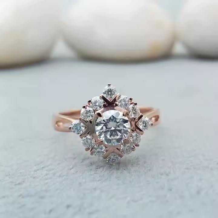 แหวนเพชรมอยส์ซอไนต์925สีเงิน10K/14K/18K แหวนแต่งงานสีขาวทองนำเทรนด์ใช้เป็นของขวัญ