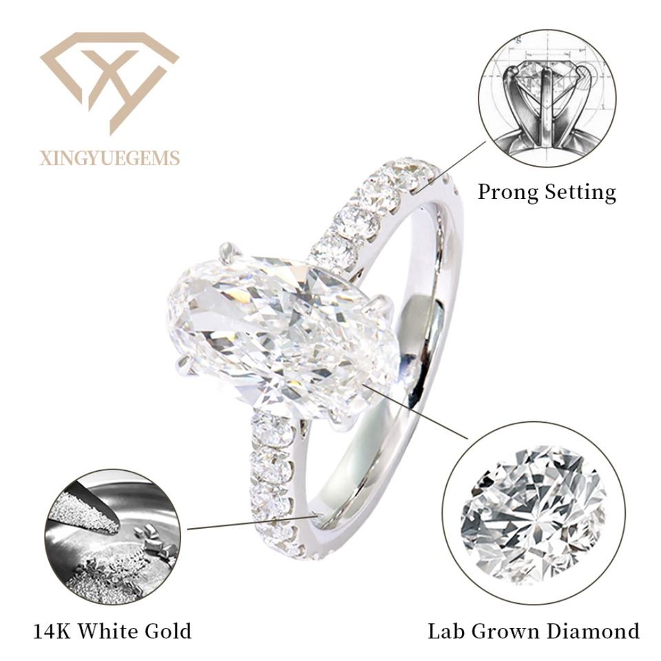 แหวนเพชรเพาะเลี้ยงในห้องปฏิบัติการ ทองคำ 18K หรูหราสั่งทำพิเศษสำหรับผู้หญิงสำหรับงานแต่งงาน