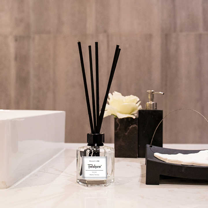 ขวดแก้ว,ก้านไฟเบอร์,สติกเกอร์ฉลาก,กล่องต้นแบบ
