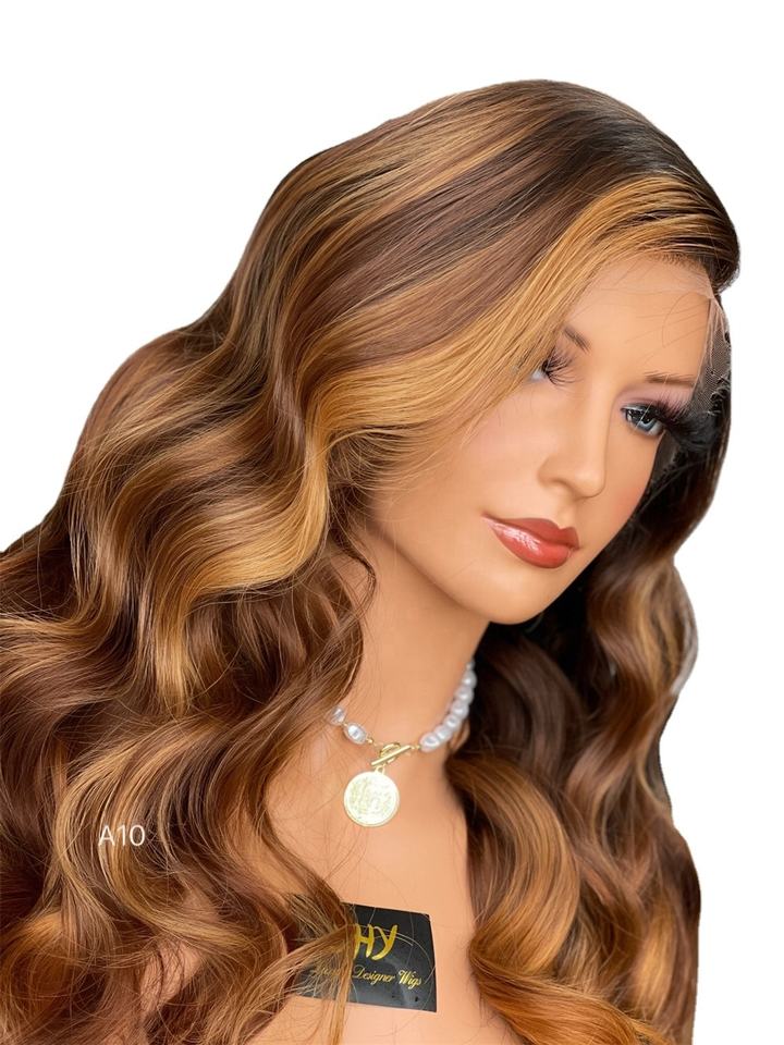 วิกผมสีน้ำตาลช็อกโกแลตแบบปรับแต่งได้วิกผมแท้แบบไม่ต้องใช้กาววิกผมมีลูกไม้ HD