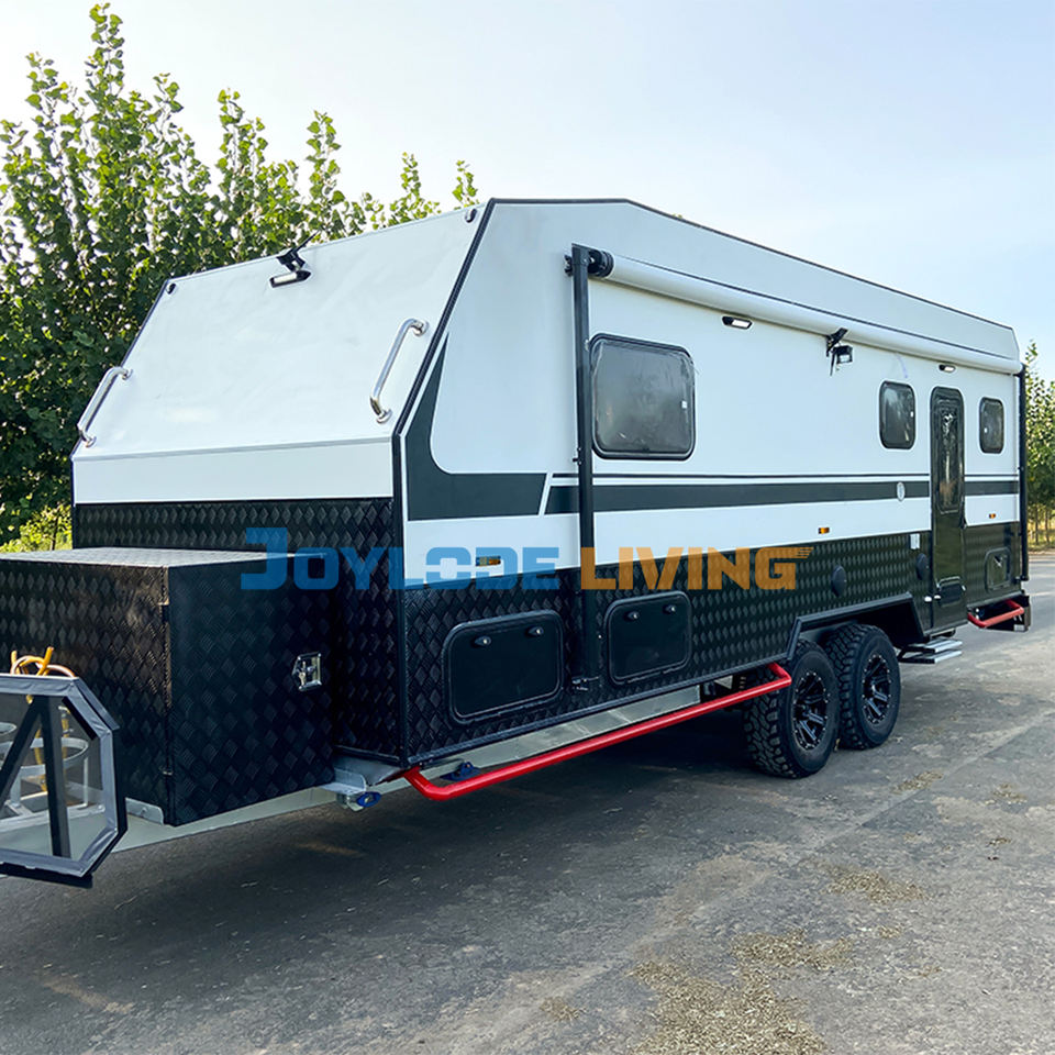 รถบ้านเคลื่อนที่สุดหรูแบบกำหนดเองทำจากไฟเบอร์กลาส พร้อมหน้าต่างขนาดใหญ่ ผลิตจากโรงงาน สำหรับการตั้งแคมป์นอกสถานที่ ใช้กับรถบรรทุก รถพ่วงสำหรับการเดินทาง