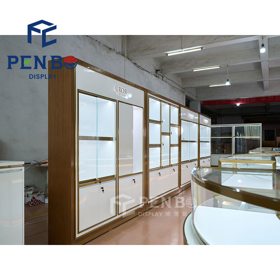 ตู้โชว์เครื่องประดับกระจกไฟ LED หรูหราปรับแต่งได้พร้อมบริการ ODM/OEM สำหรับโชว์รูมร้านค้าปลีกและห้างสรรพสินค้า-แบรนด์เพนโบ