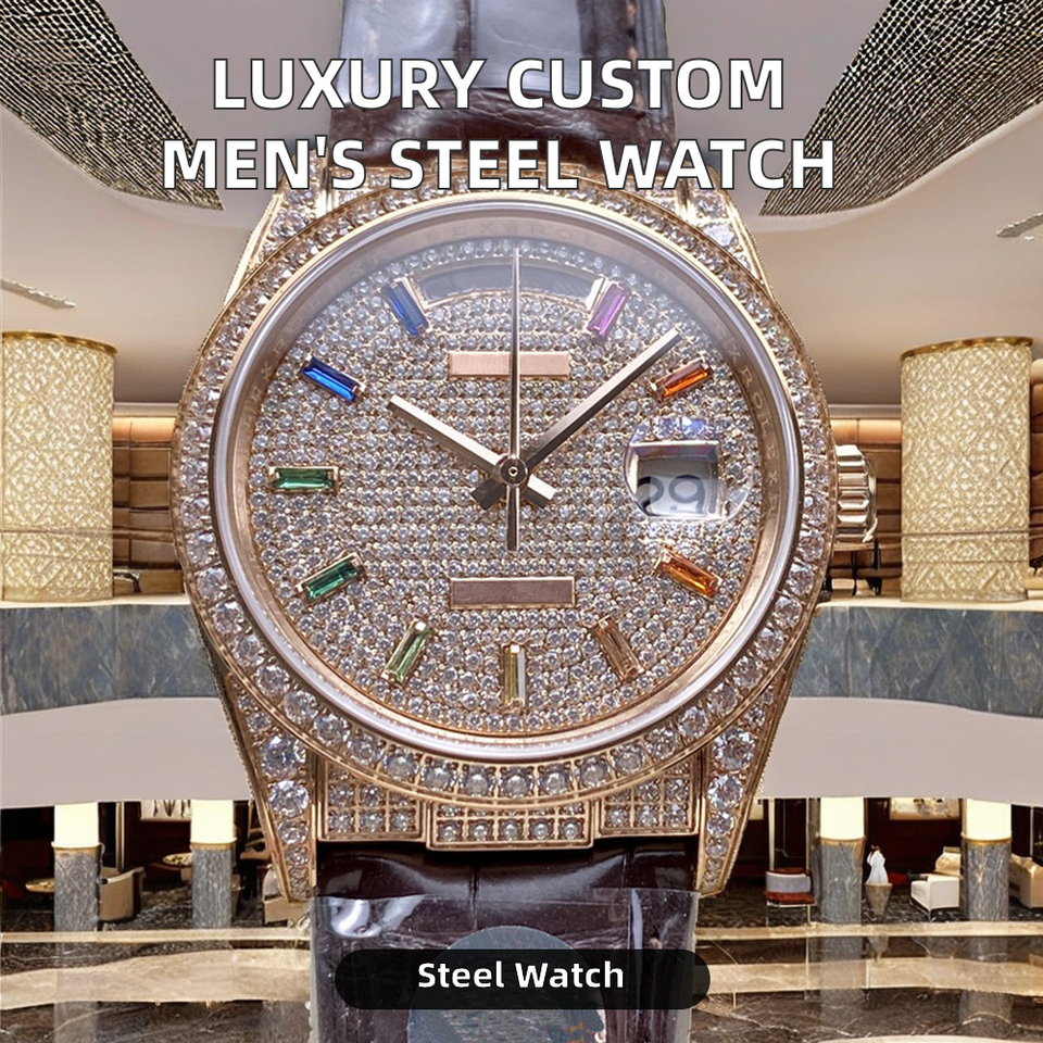 นาฬิกาข้อมือผู้ชายสุดหรูแบบกำหนดเอง ขนาด 42 มม. ตัวเรือนโลหะผสมเคลือบด้าน กระจกแซฟไฟร์ กันน้ำ 3BAR ระบบตูร์บิญอง พร้อมฟังก์ชั่นแสดงข้างขึ้นข้างแรม สายขนาด 22 มม.