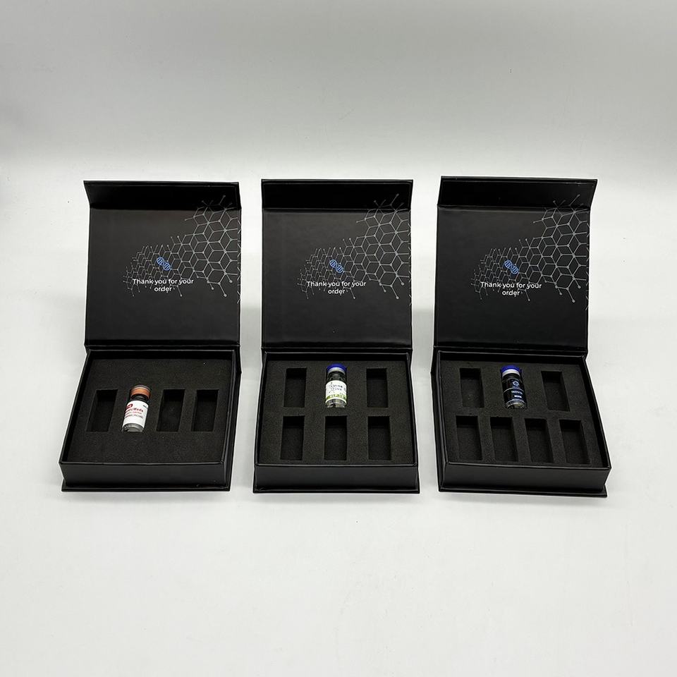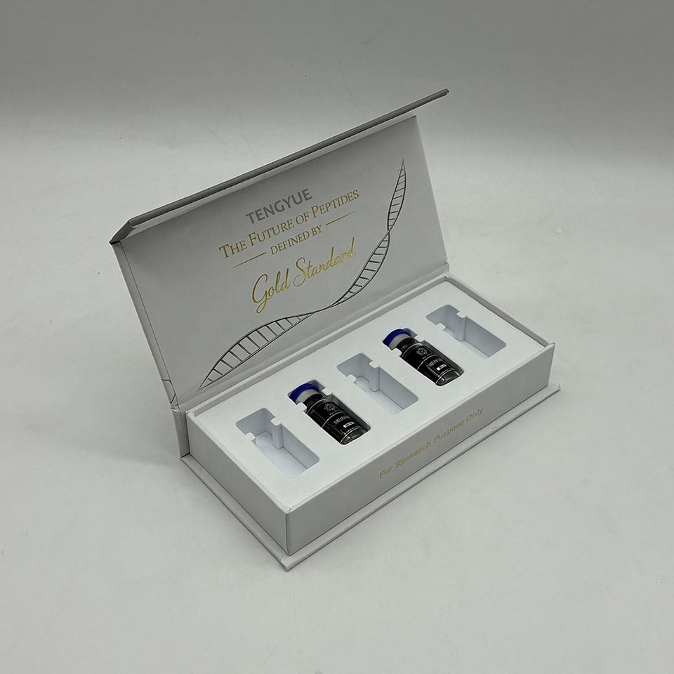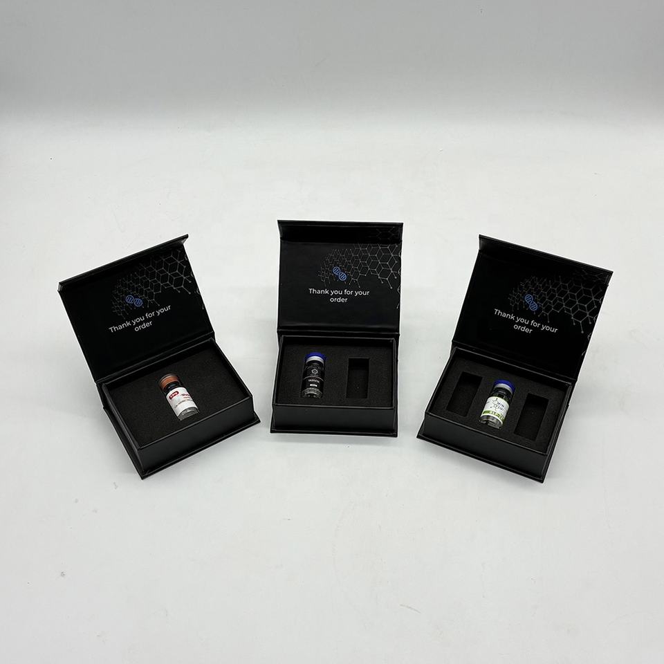 บรรจุภัณฑ์เครื่องสำอางแบบแข็งพร้อมแม่เหล็ก พิมพ์ลายทองคำ ปั๊มโลโก้ สำหรับขวดเปปไทด์ขนาด 3 มล. จำนวน 5 ขวด แบบกำหนดเองได้