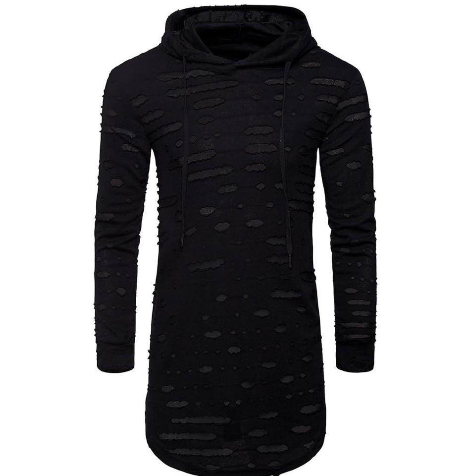 เสื้อสเวตเตอร์แบบสวมศีรษะทรงยาวมีฮู้ดแบบกำหนดเองเสื้อสเวตเตอร์แบบสวมหัวทรงสกินนี่ลายวินเทจแอซิดทำให้ขาด