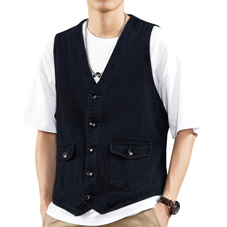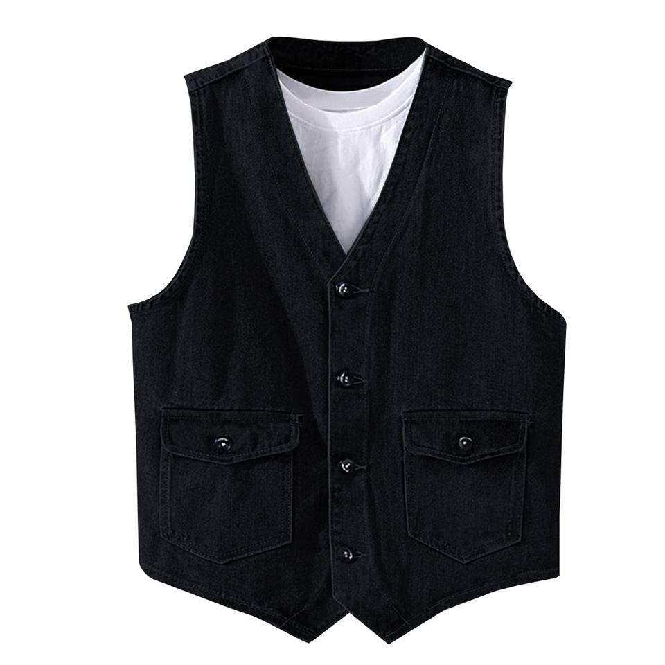 เสื้อกั๊กผ้ายีนส์สำหรับผู้ชายเสื้อกั๊กยีนส์ผ้าคอตตอนดีไซน์ใหม่ออกแบบได้ตามต้องการ