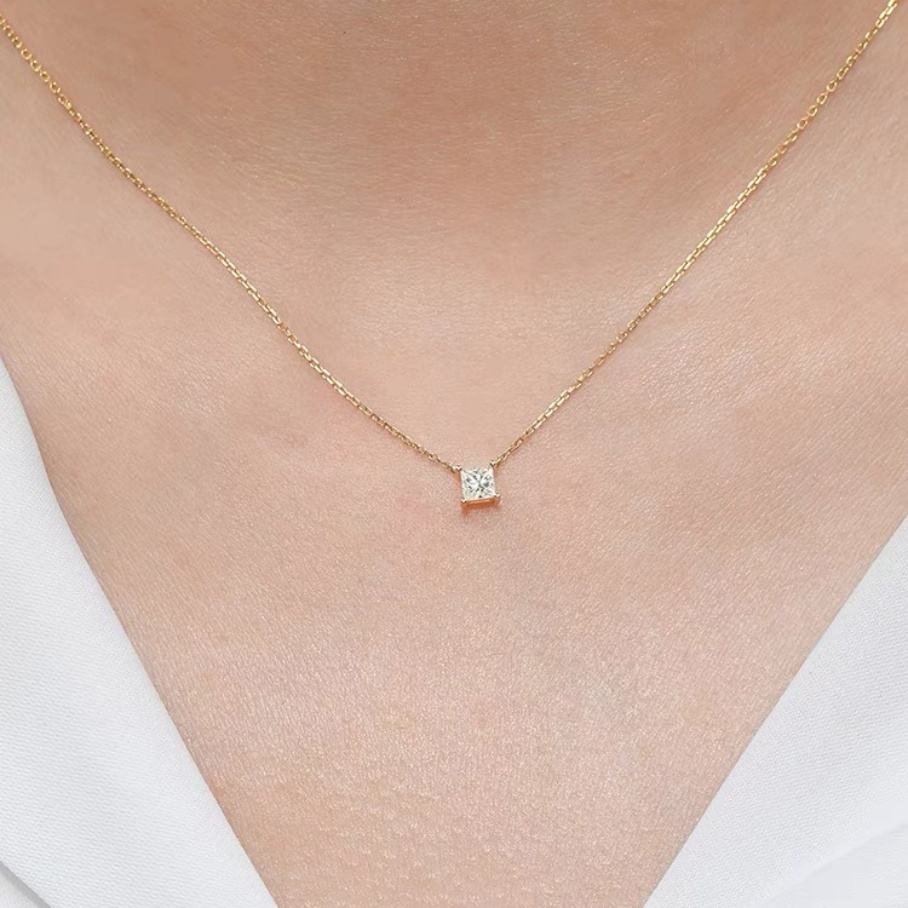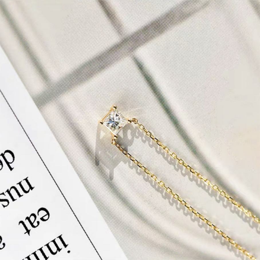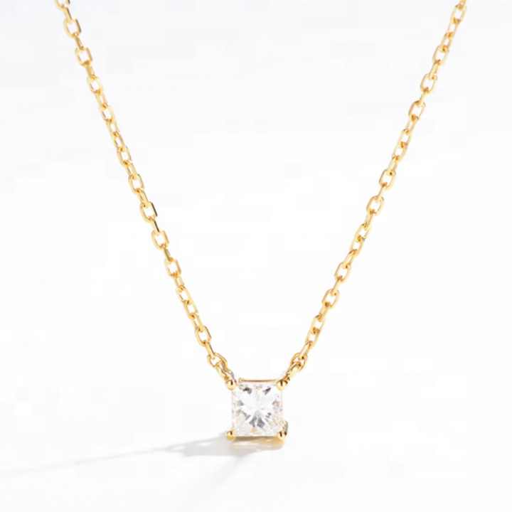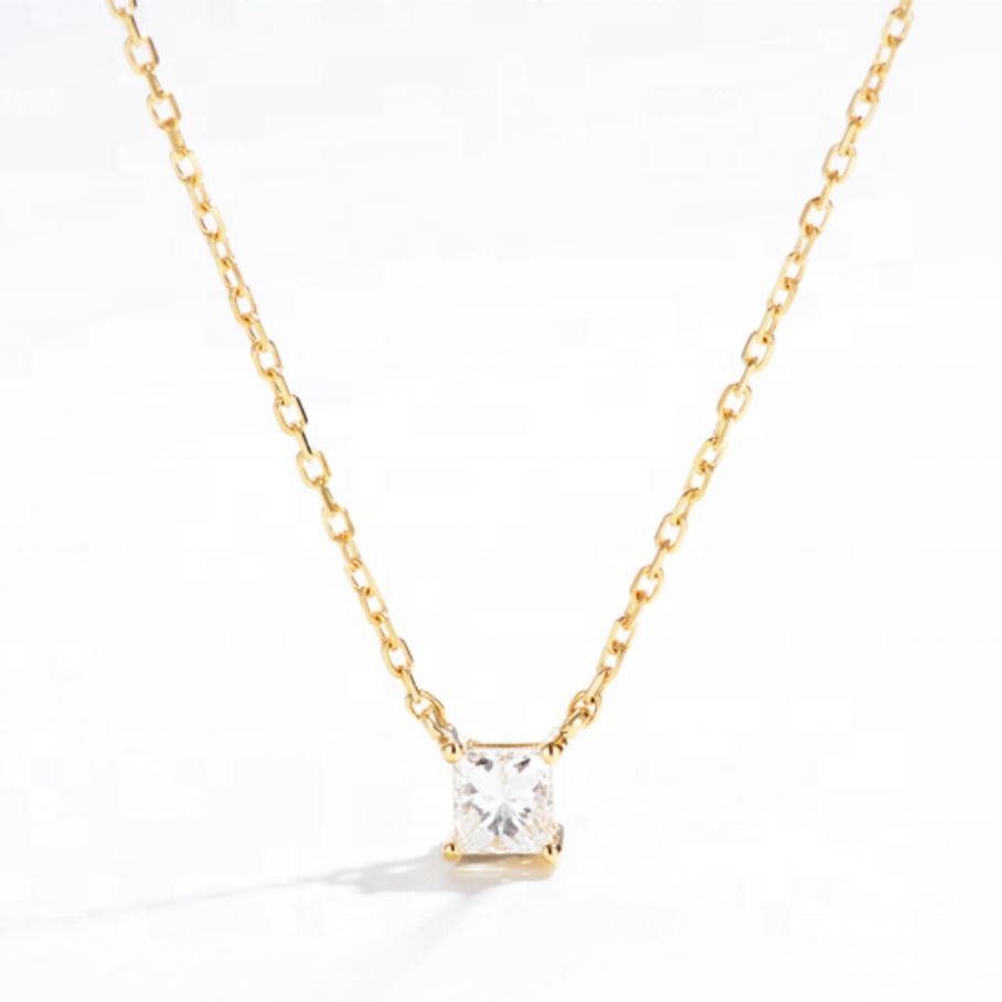 สร้อยคอทองคำ 14K/18K สีเหลือง ประดับเพชรโมอิสซาไนต์ทรงเจ้าหญิง 3 กะรัต แบบสั่งทำพิเศษ