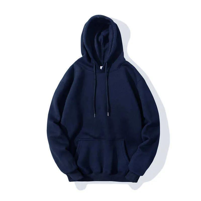 เสื้อฮู้ดผ้าฝ้ายหนาสำหรับผู้ชายเสื้อมีฮู้ดสีฟ้าแนวสตรีท