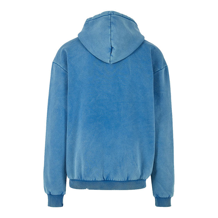 เสื้อมีฮู้ดสำหรับผู้ชายผ้าฝ้ายแบบลำลองสีพื้นมีซิปสำหรับฤดูหนาวผ้าซีดซีดจาง