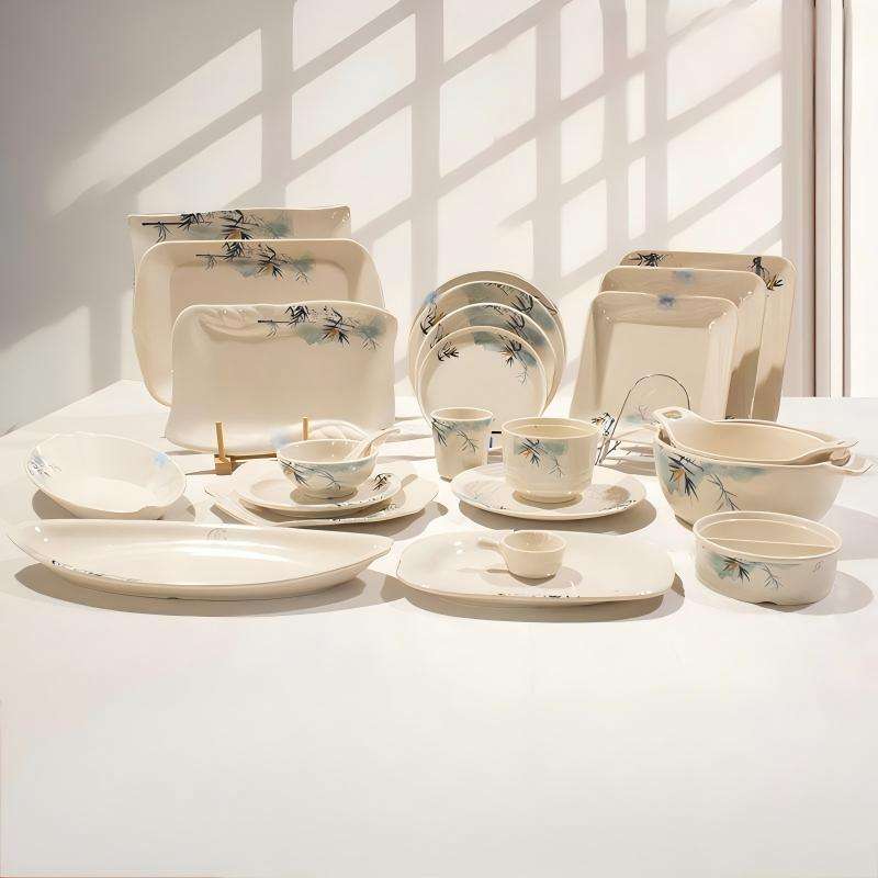 ชุดจานชามเมลามีน Jiegaosheng โต๊ะในโรงแรมชุดจานชามใช้กับอาหารในครอบครัวใช้กับเครื่องล้างจานได้ตามต้องการ