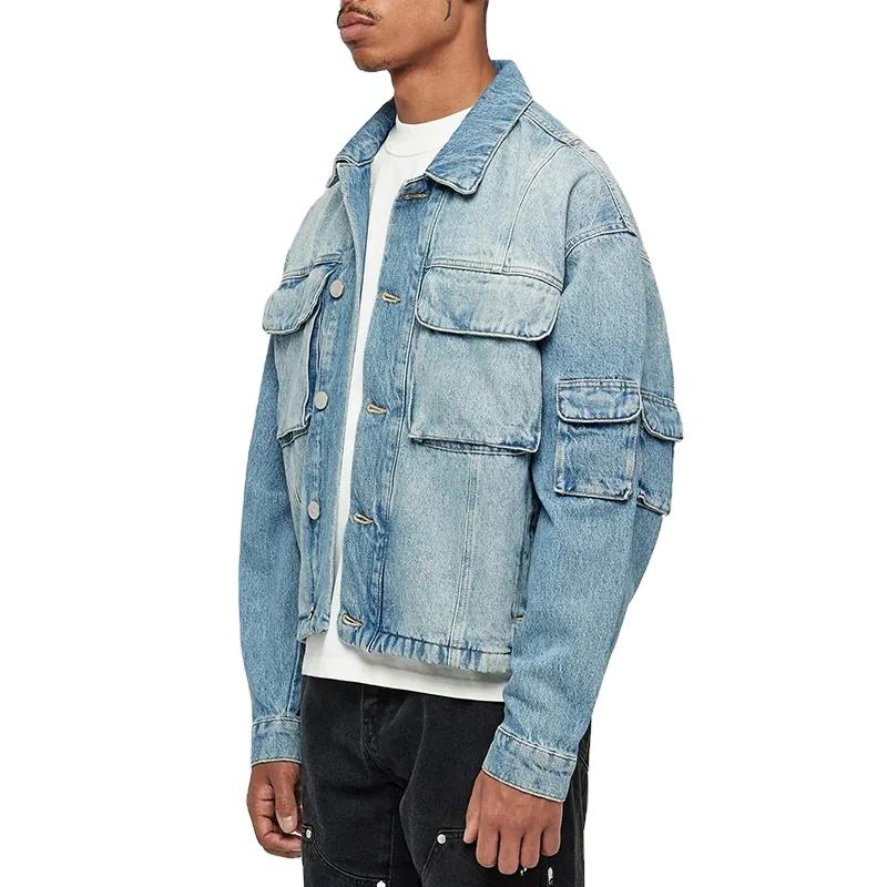 แจ็คเก็ตยีนส์ผู้ชายสีเขียวมิ้นท์แบบเรียบง่าย สไตล์ลำลอง ขายดี แจ็คเก็ตยีนส์ผู้ชายแบบเรียบๆ สไตล์เท่ๆ ผ่านการฟอกสี