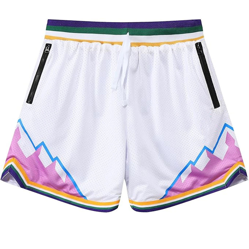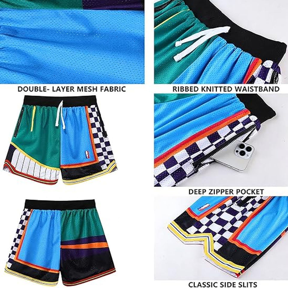 กางเกงบาสเก็ตบอลตาข่ายผู้ชายแบบสั่งทำพิเศษ มีกระเป๋าข้าง เอวยางยืดพร้อมเชือกผูก งานพิมพ์ซับลิเมชั่น 3 มิติ รับผลิตแบบ OEM ODM