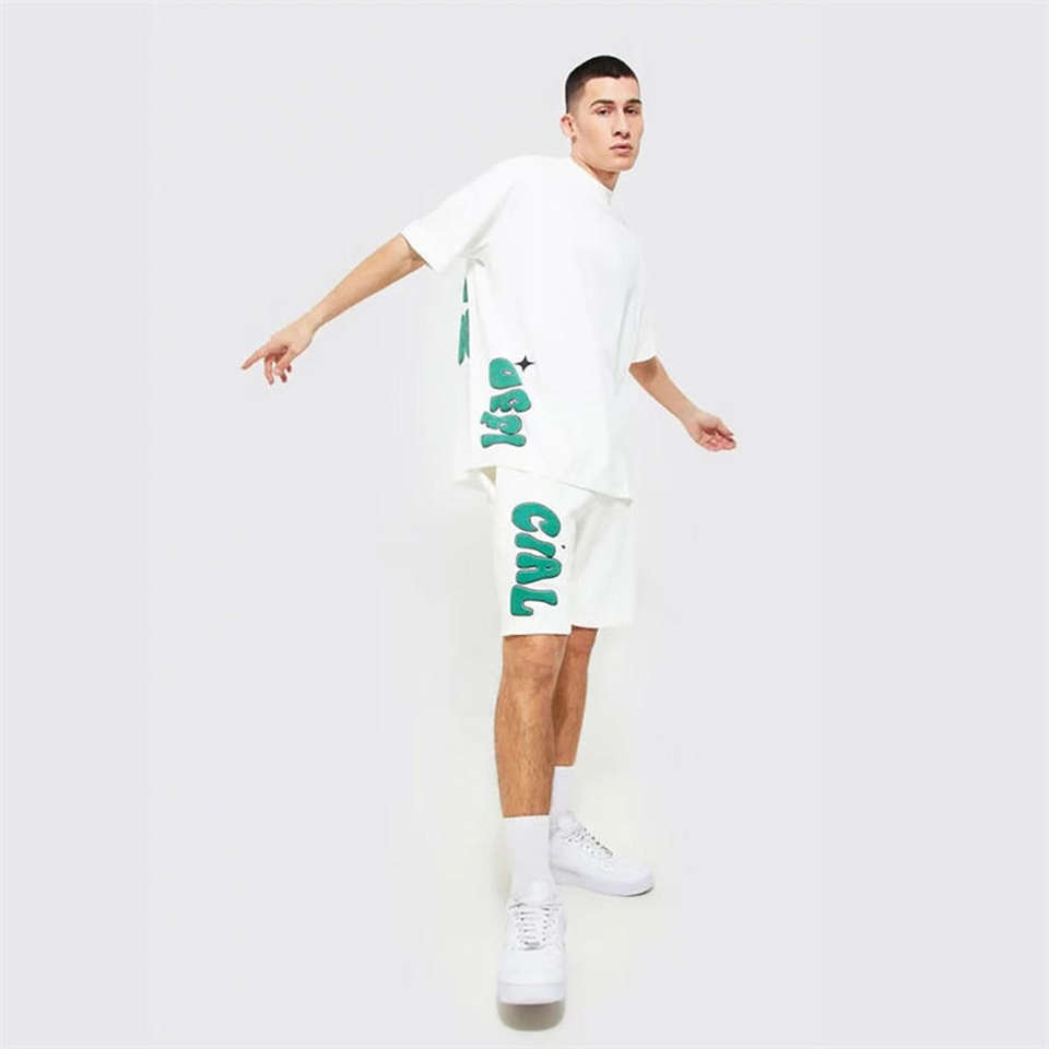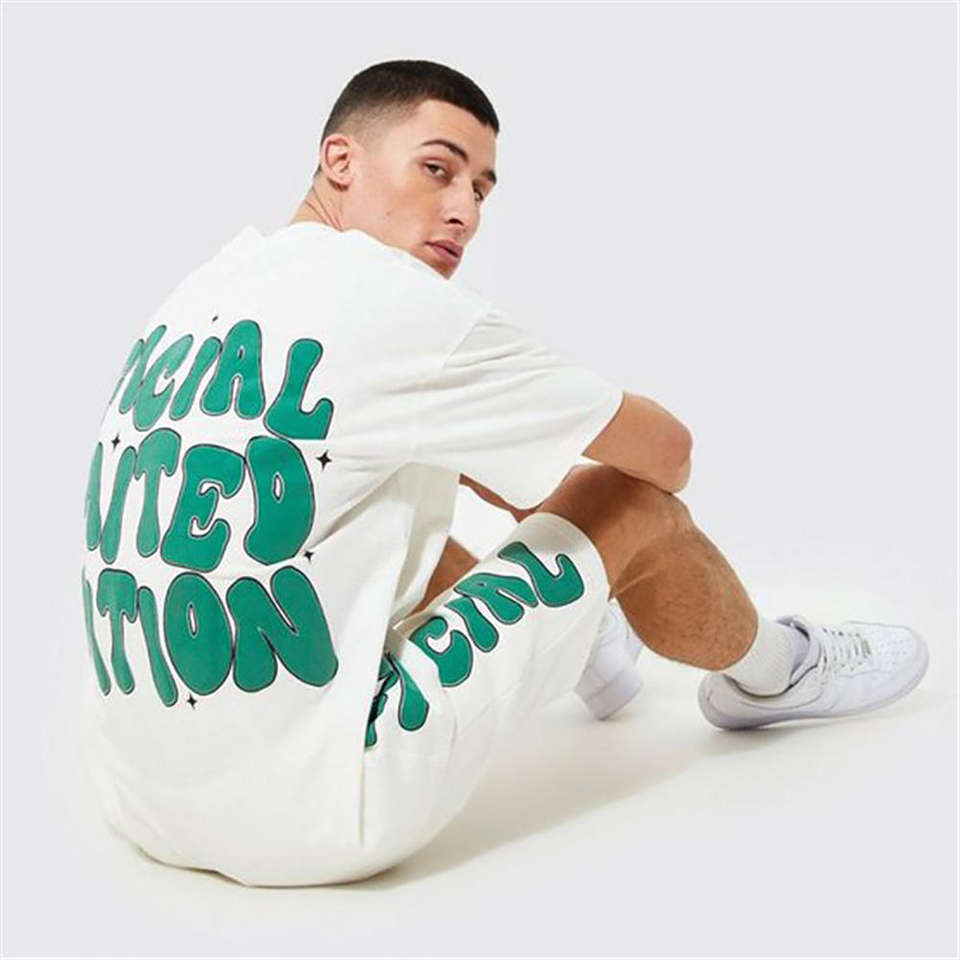 ชุดเซ็ตเสื้อยืดแขนสั้นและกางเกงขาสั้นชายหาดสำหรับฤดูร้อนแบบกำหนดเองได้ พร้อมลายพิมพ์นูน
