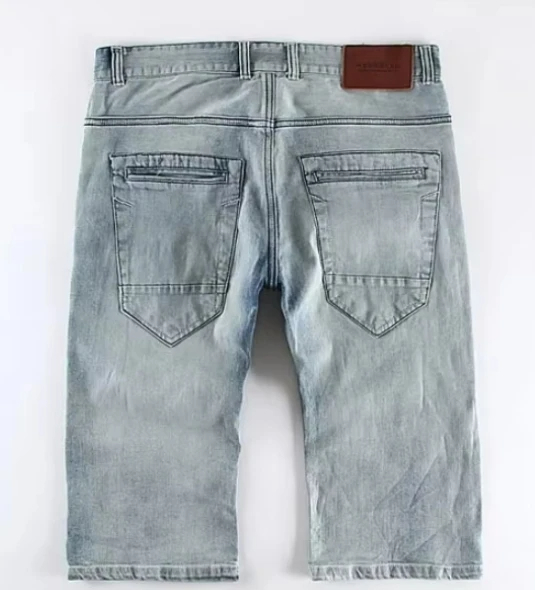 กางเกงขาสั้นผ้าเดนิมคอตตอนสีครามสำหรับผู้ชายกางเกงขาสั้นผ้าเดนิมผ้าฝ้าย100% สไตล์เรียบง่ายสำหรับฤดูใบไม้ผลิฤดูใบไม้ร่วง
