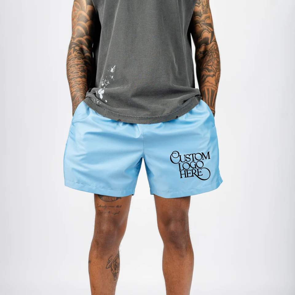กางเกงขาสั้นผู้ชายสั่งทำพิเศษ ผ้าโพลีเอสเตอร์ไนลอน 100% คุณภาพสูง เอวกลาง สไตล์ลำลอง สตรีทแวร์ สีพื้น ยางยืด ยี่ห้อส่วนตัวสุดฮิต