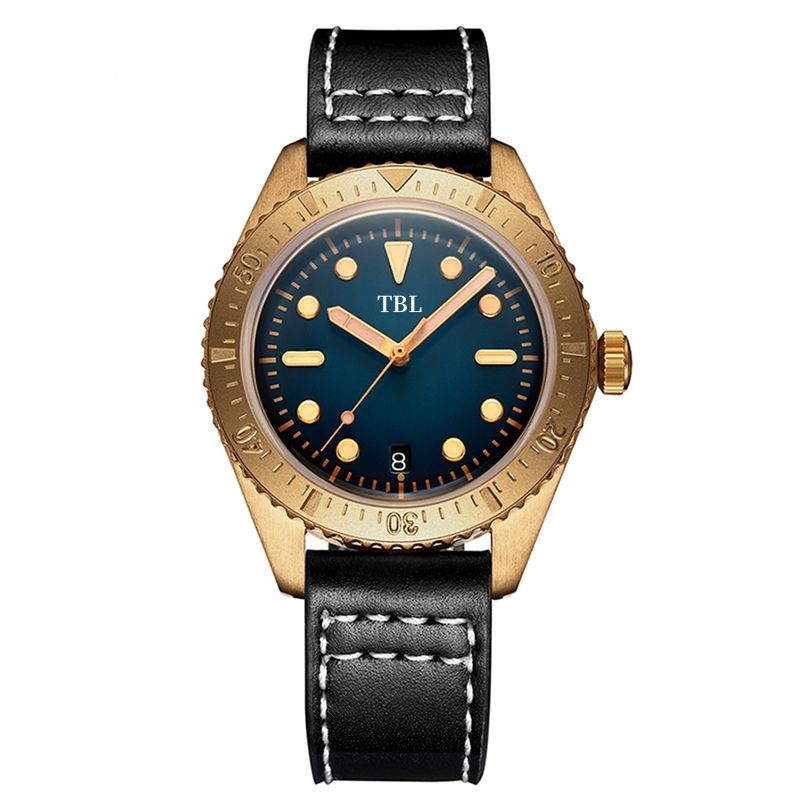 นาฬิกากลไกจักรกลสำหรับผู้ชาย C3งานตามสั่ง NH35A อัตโนมัติกันน้ำแซฟไฟร์นาฬิกากลไกหรูหราส่องแสงสว่างมากพร้อมเคสสีบรอนซ์