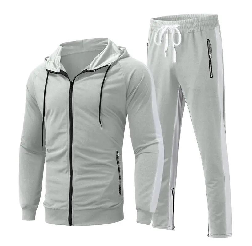 ชุดวอร์มผ้าฟลีซระบายอากาศสำหรับผู้ชายชุดวอร์มสองชิ้นมีฮู้ดชุดไซส์ใหญ่พิเศษสำหรับฤดูใบไม้ร่วง