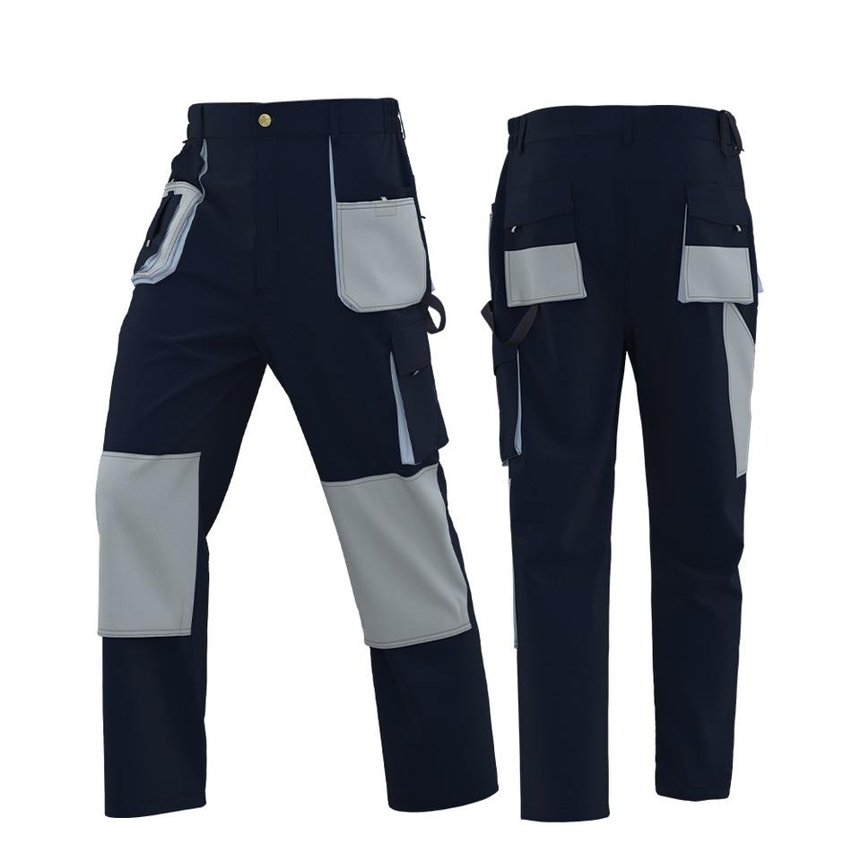 กางเกงเซฟตี้ขาตรงสองสีสำหรับผู้ชายกางเกงทำงานฤดูใบไม้ร่วงฤดูหนาวมีหลายกระเป๋าและแถบสะท้อนแสง