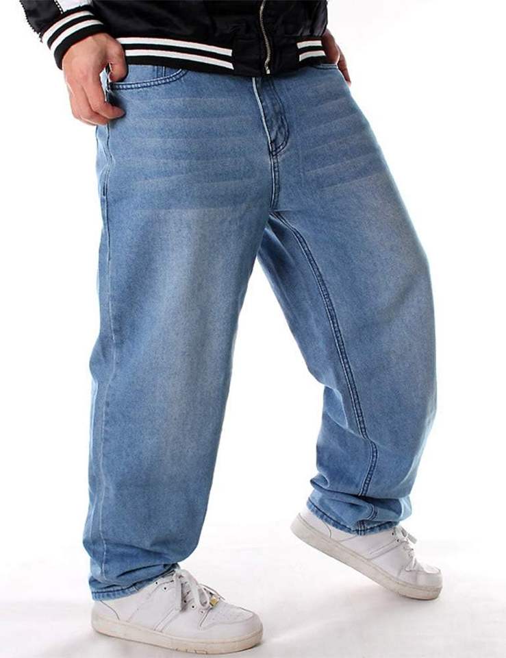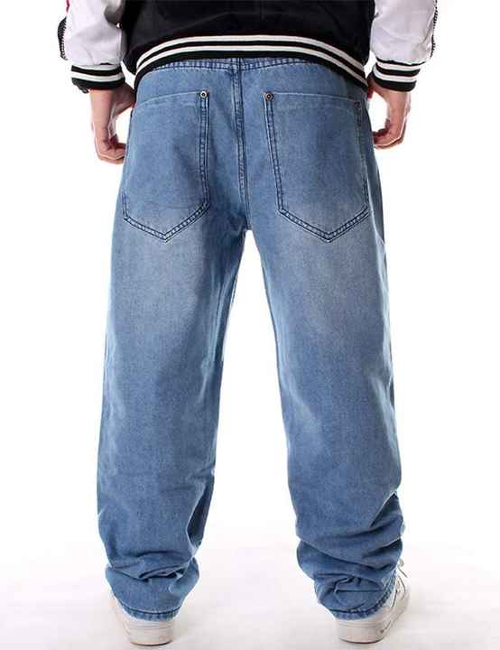 กางเกงยีนส์ฮิปฮอปทรงหลวมสำหรับผู้ชายแบบสั่งทำพิเศษ ลุคฟอร์มอล ขาดๆ แต่งลายปัก ทรงปกติ กระดุมติด ผ้าเดนิมสำหรับเล่นสเก็ตบอร์ด สีพื้น