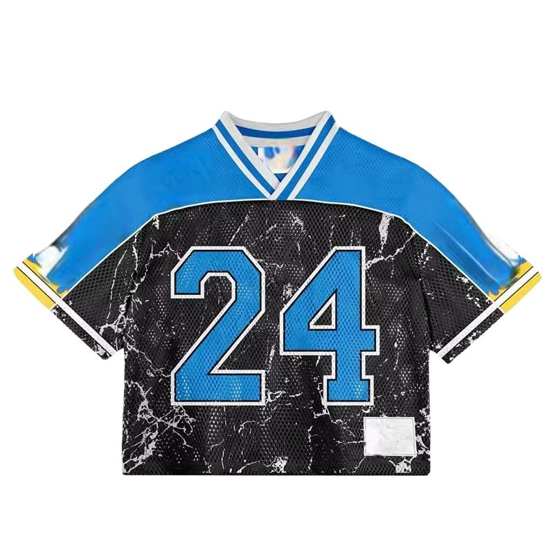 เสื้อบาสเก็ตบอลผู้ชายแบบสั่งทำพิเศษ เสื้อฟุตบอลตาข่ายสไตล์เรโทร สำหรับสตรีทแวร์ ทรงโอเวอร์ไซส์ ทรงบ็อกซี่ แบบครอป ระบายอากาศได้ดี ดีไซน์ไซส์พลัส