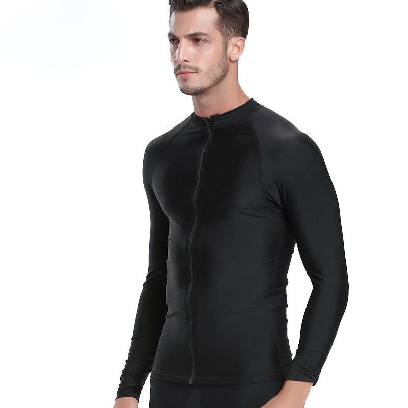 Customized Men's Black Latex Compression Surf Shirt Sun Protective Zipper Rash Guard Breathable Quick Dry Anti-UV