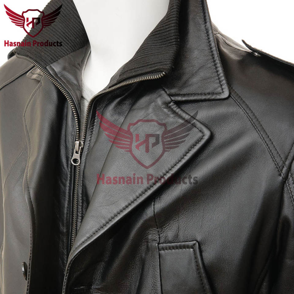 เสื้อแจ็คเก็ตหนังสีดำของผู้ชายเสื้อโค้ทหนังแท้ทำมือคุณภาพพรีเมี่ยมสำหรับสุภาพบุรุษมีสไตล์ในฤดูหนาว