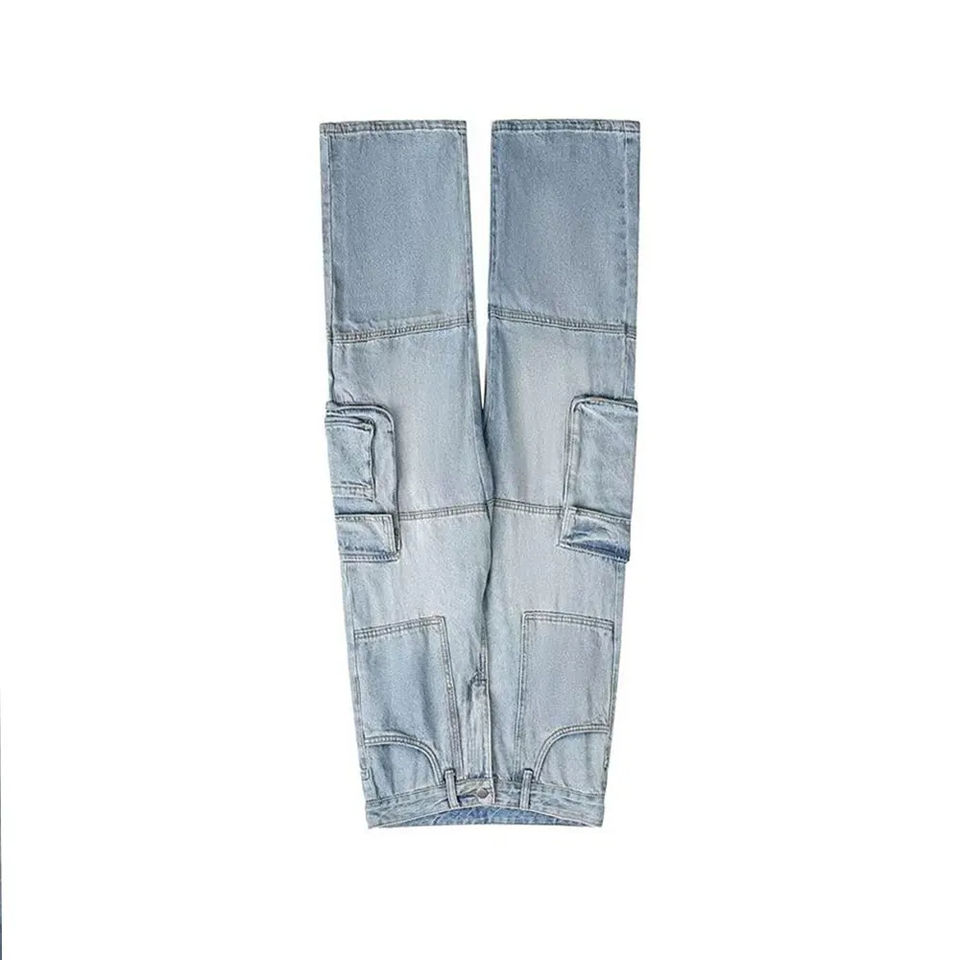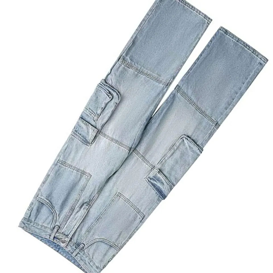 กางเกงยีนส์เดนิมผู้ชายแบบคลาสสิกสไตล์โกธิค กางเกงยีนส์เคลือบผิวสำหรับผู้ชายสไตล์ลำลองแนวสตรีท ฮิปฮอป ทรงตรง สีพื้น กางเกงขายาวทรงสแต็ค