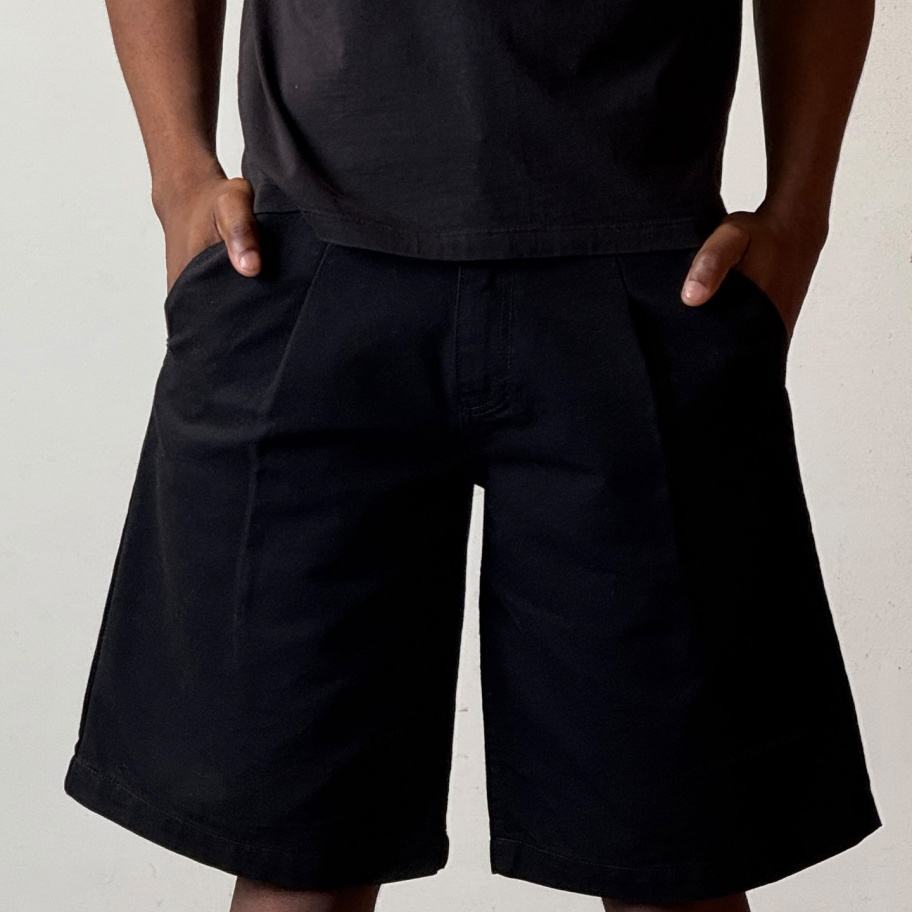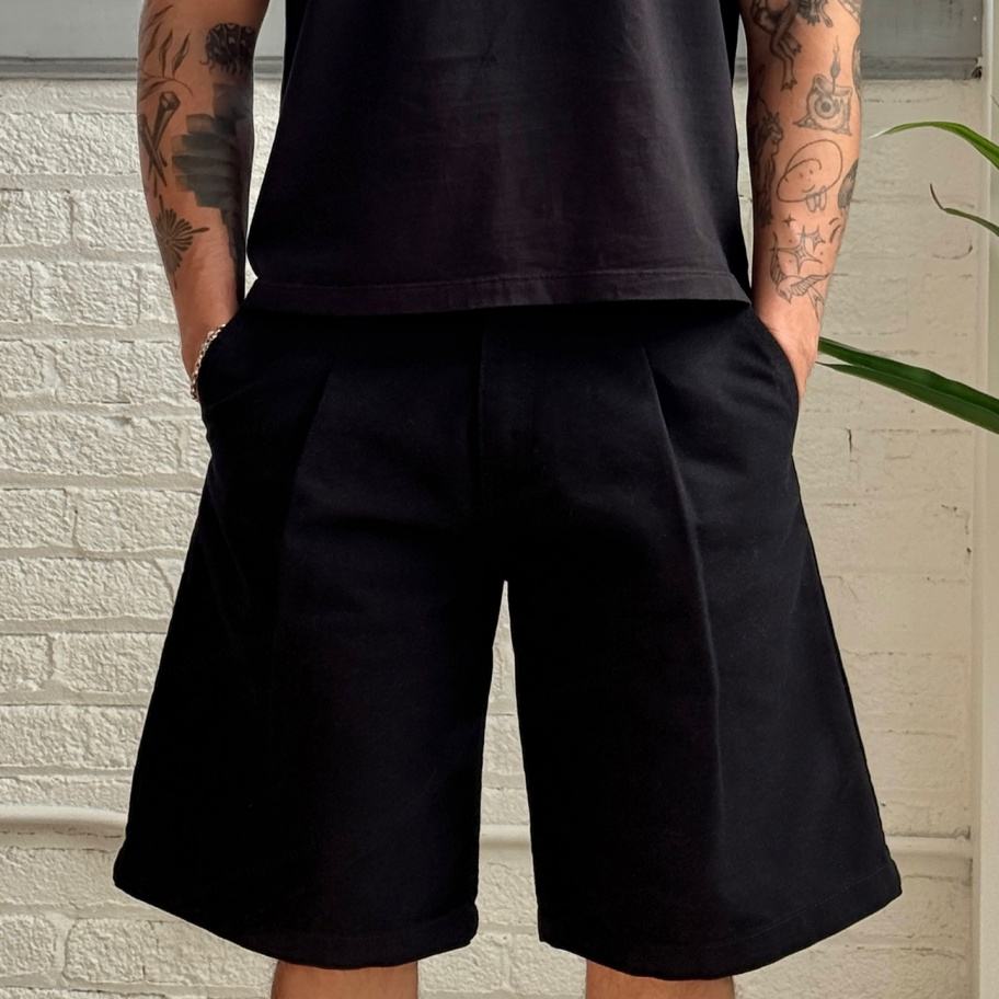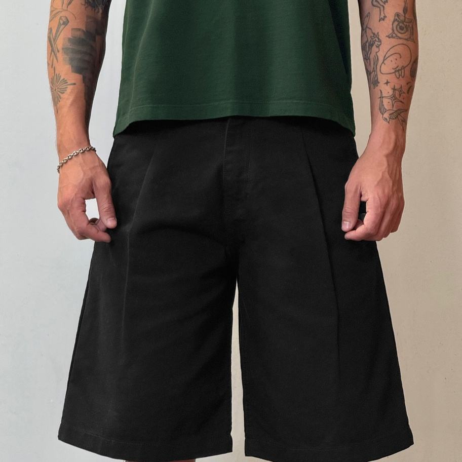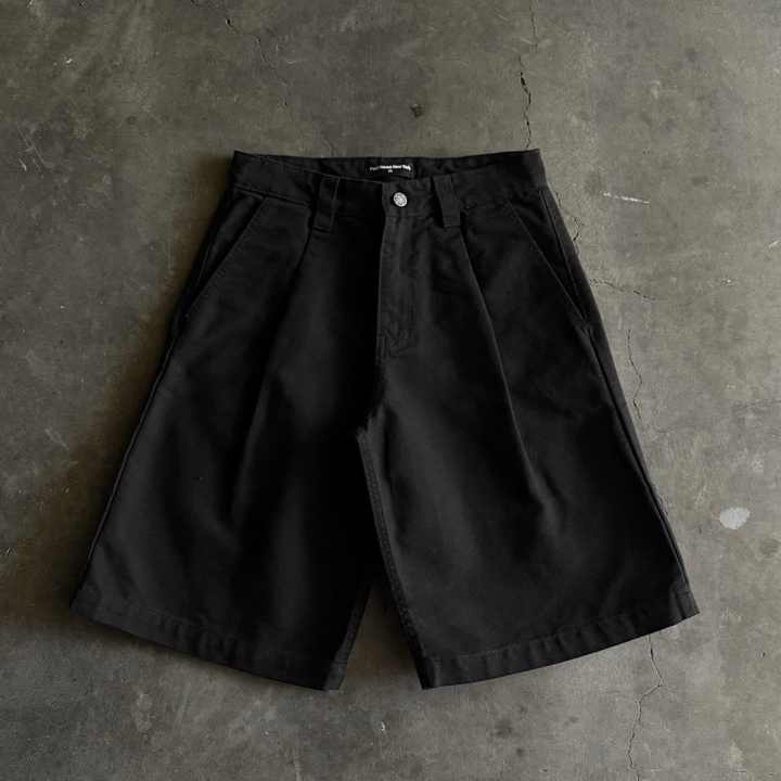 กางเกงขาสั้นทรงตรงผ้าฝ้าย 100% หนานุ่ม สไตล์วินเทจ จีบพลีท ลาย 3 มิติ ทรงโอเวอร์ไซส์ เอวกลาง สำหรับผู้ชาย