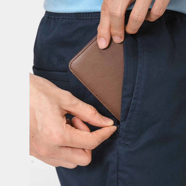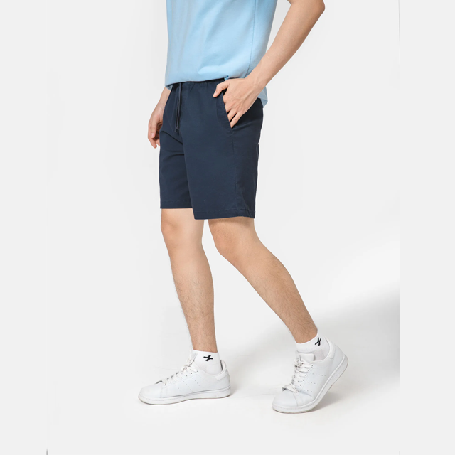 กางเกงขาสั้นผู้ชายสีกากีแบบสบายๆ เอวยางยืด ทรงกลางลำตัว สีพื้น เป็นมิตรกับสิ่งแวดล้อม