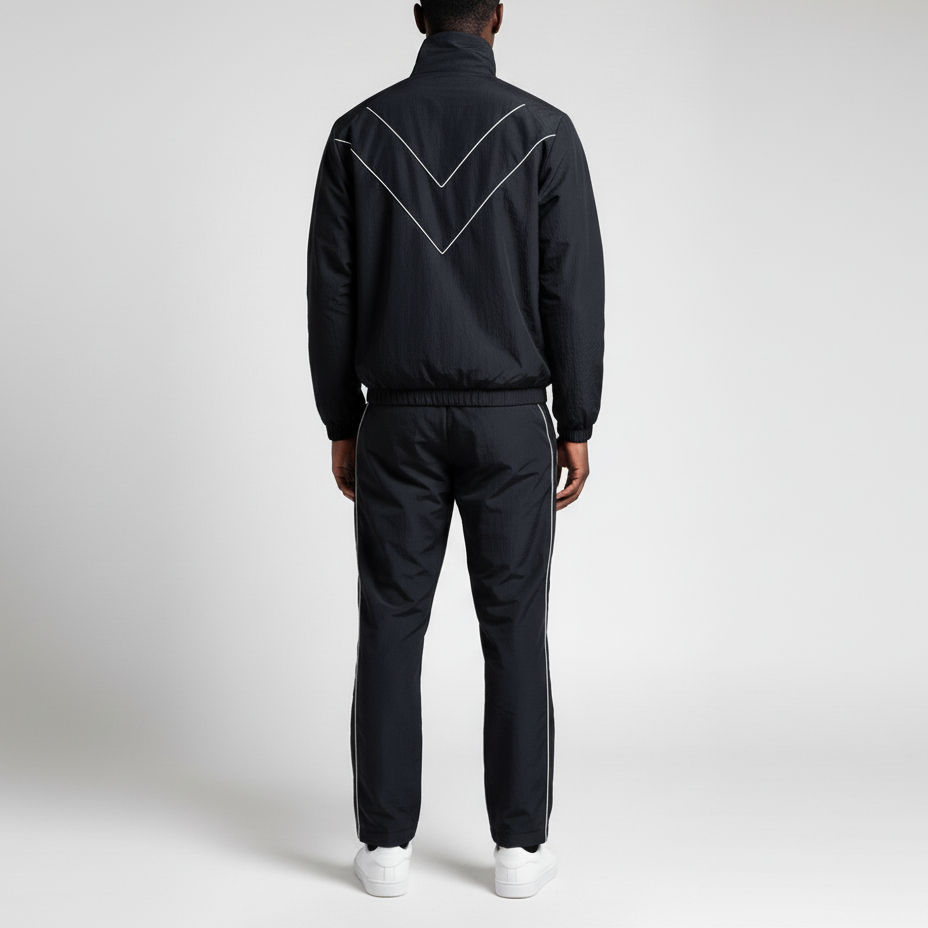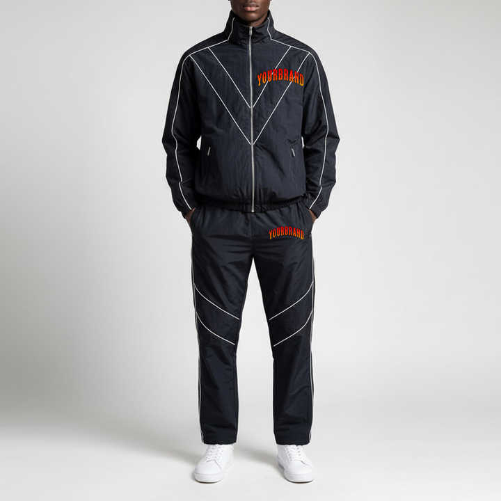 ชุดวอร์มกันลมไนลอนแบบกำหนดเองสำหรับผู้ชาย ชุดเซ็ต 2 ชิ้น เสื้อผ้าสำหรับกิจกรรมกลางแจ้งสำหรับผู้ชาย ชุดวอร์มโพลีเอสเตอร์แบบปะติดปะต่อตามสั่ง