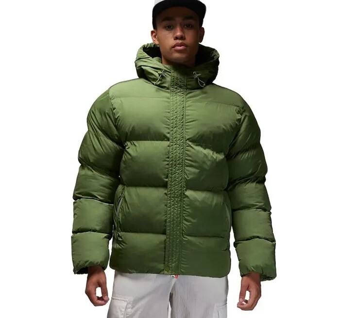 แจ็กเก็ตขนเป็ดโพลีเอสเตอร์สำหรับผู้ชายไซส์พิเศษมีซิปรูดให้ความอบอุ่นในฤดูหนาวเสื้อผ้าแนวสตรีทมีฮู้ดทรงหลวมแบบปรับแต่งได้