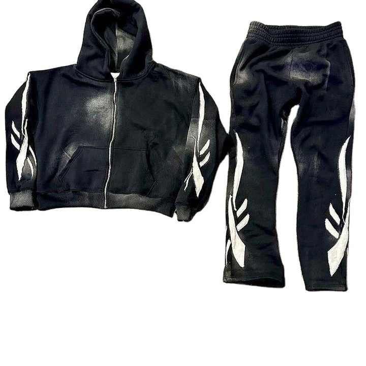 ชุดวอร์มผู้ชายไซส์ใหญ่พิเศษ ผ้าฝ้าย 100% สำหรับฤดูหนาว ระบายอากาศได้ดี แห้งเร็ว เอวยางยืด กางเกงขายาวทรงบาน