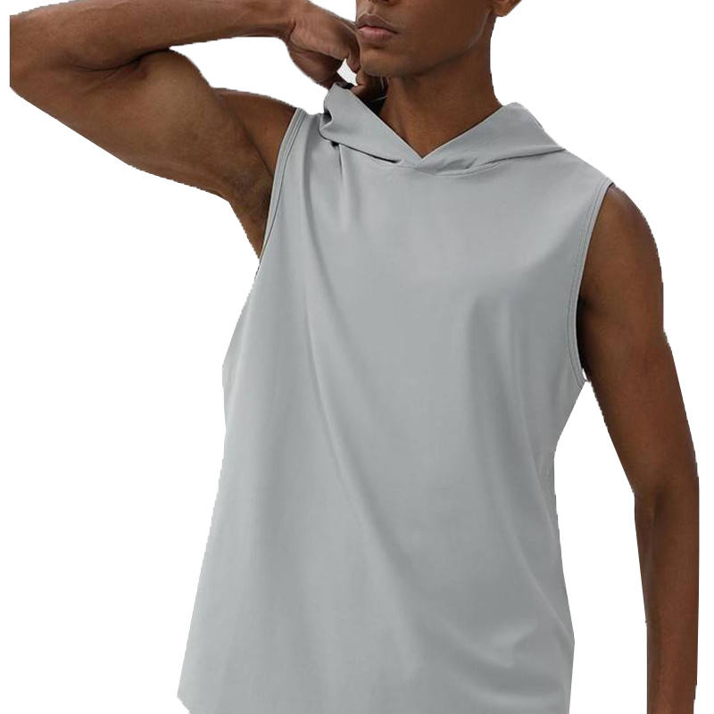 เสื้อกล้ามออกกำลังกายผู้ชายแบบแห้งเร็วสั่งทำพิเศษ เสื้อกล้ามฟิตเนสเพาะกายแบบไม่มีแขนมีฮู้ด