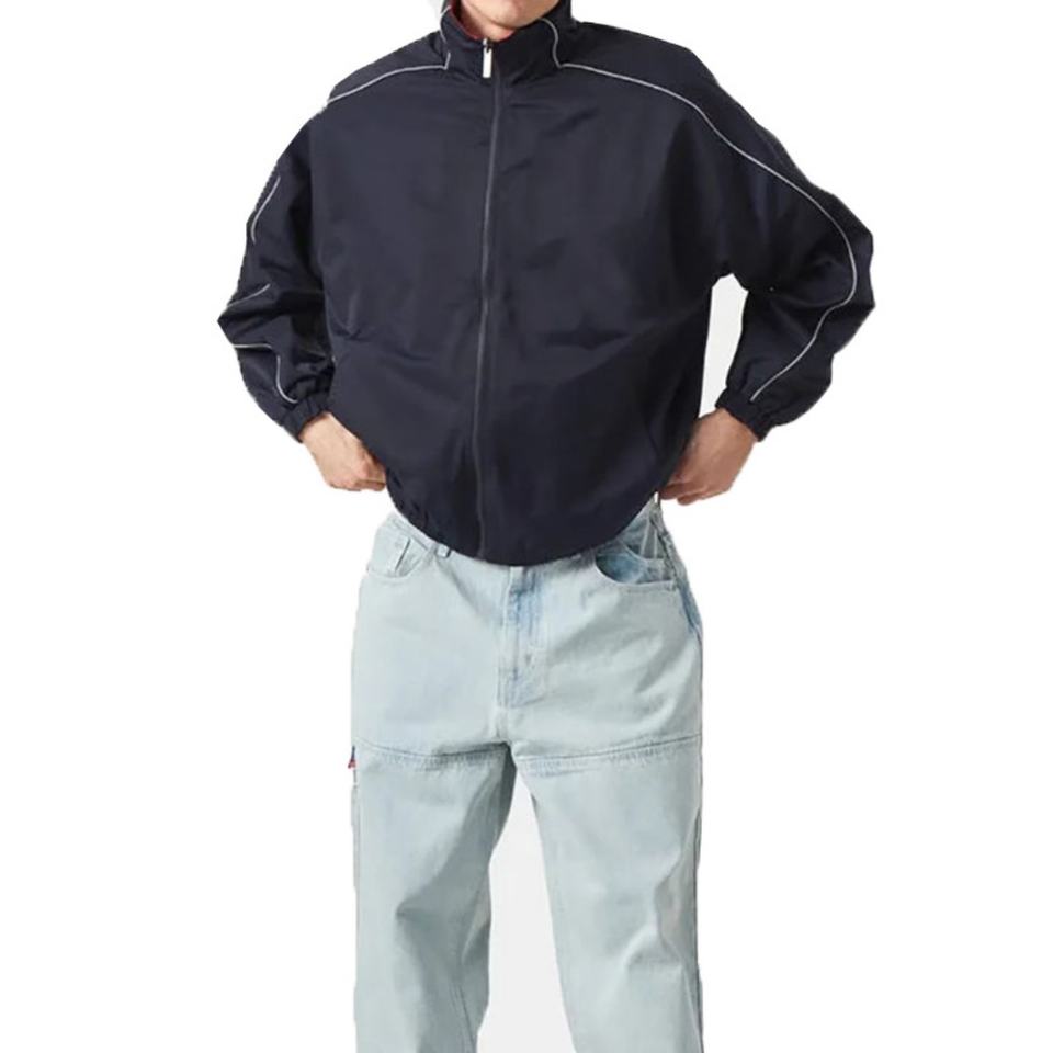 เสื้อแจ็คเก็ตวินด์เบรกเกอร์ไนลอนสีแดงแบบกลับด้านได้สำหรับผู้ชาย ลายเรียบ ชุดกีฬาสำหรับผู้หญิงสำหรับกิจกรรมกลางแจ้ง