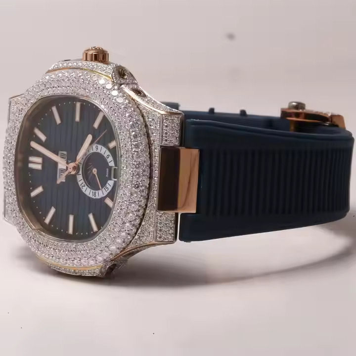 นาฬิกาข้อมือยางสำหรับผู้ชายปรับแต่งได้ตามต้องการความคมชัดของเพชรโมอิสซาไนท์ตัดเพชร VVS ควอตซ์