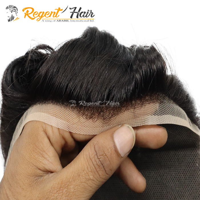 วิกผมสำหรับผู้ชายผมปลอม WFX03H ผมแท้สีดำธรรมชาติ100% มีลูกไม้ฐานเป็นขอบผมสไตล์คนเมือง